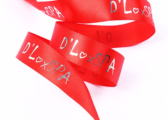 Milieuvriendelijk Custom Satijnen Lint Met Zilverfolie Logo Gedrukt Logo Merknaam Lint